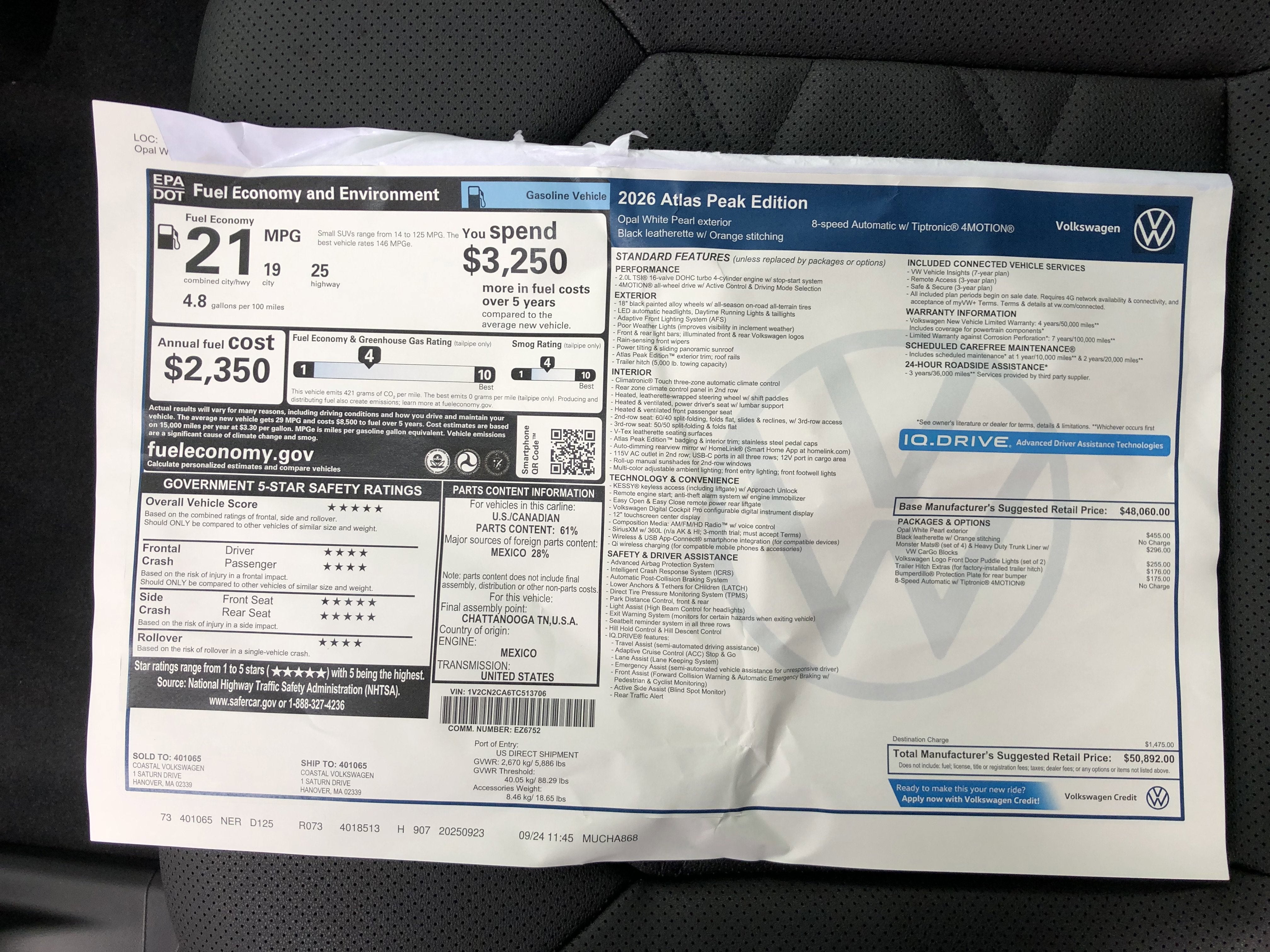 - Vehicle Name: Volkswagen Atlas