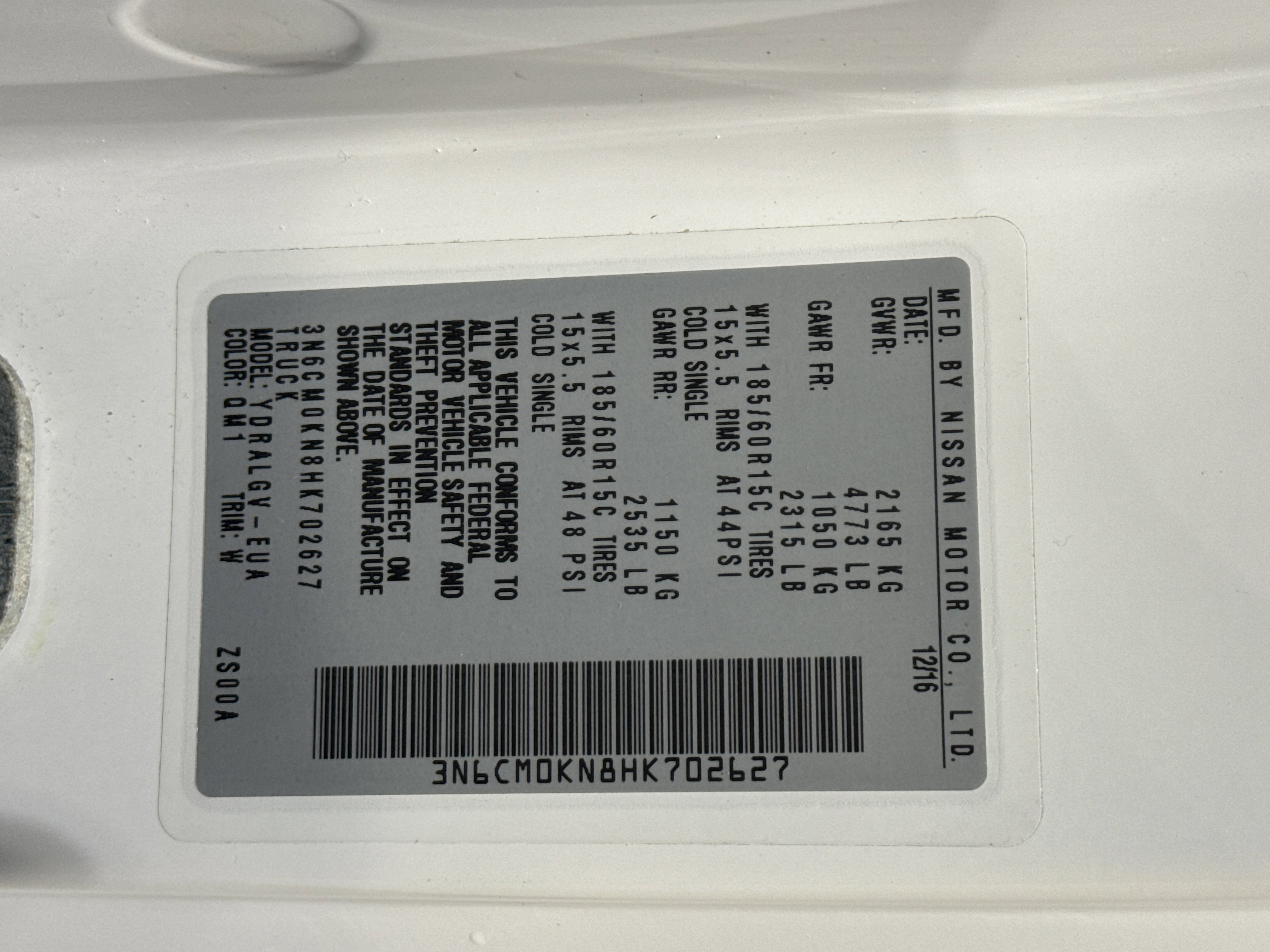 - Vehicle Name: Nissan NV200 Compact Cargo