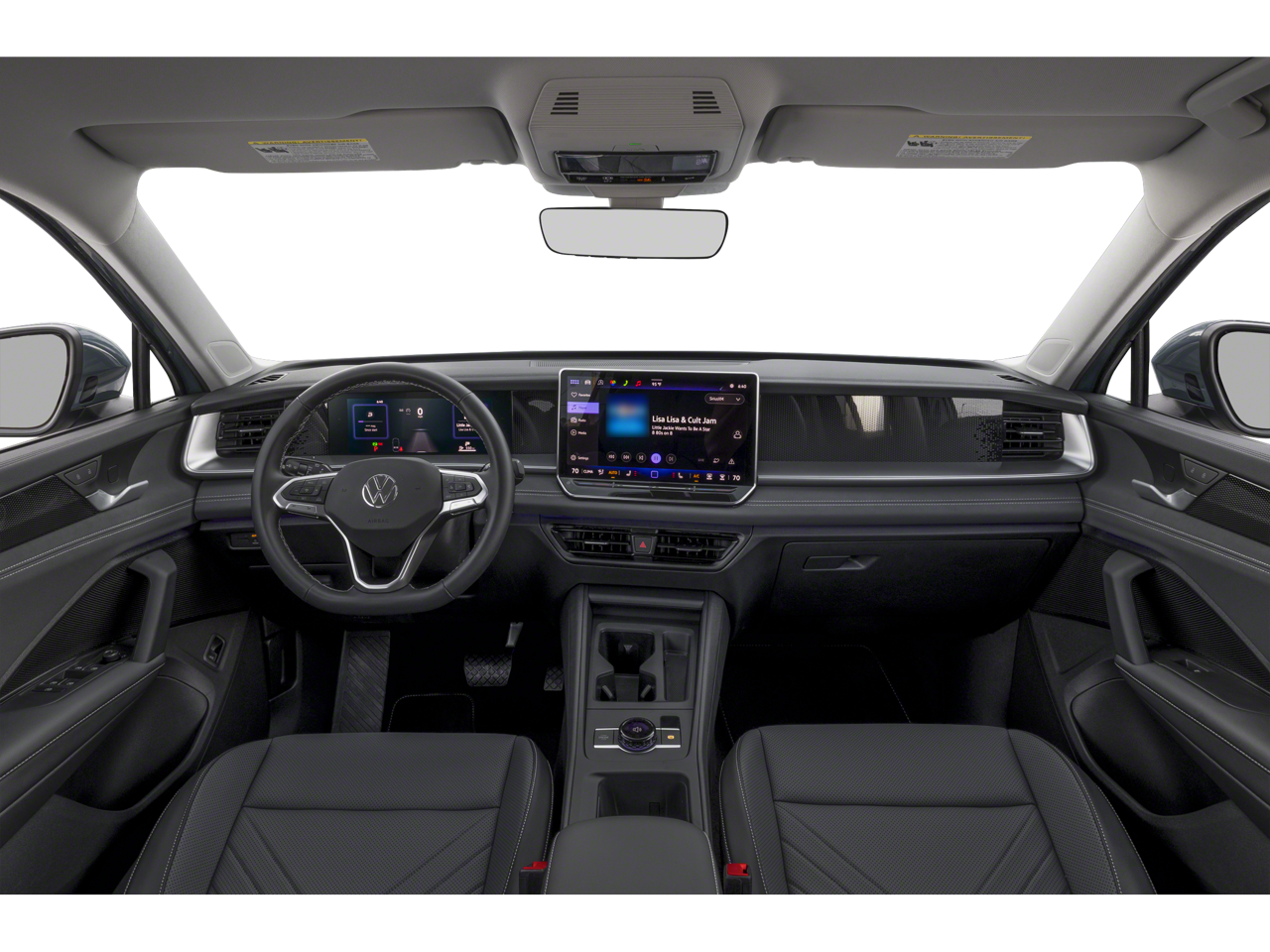 - Radio: MIB4 Composition Media Touchscreen AM/FM -inc: WMA/MP3/FLAC player w/USB, 12.9" touchscreen multi-function center display w/backlit sliders, voice control, 6 speakers + center speaker (7 speakers total) sound system, capability for in-vehicle 4G LTE enabled Wi-Fi (cellular data plan required; includes limited trial), capability for VW Car-Net services (capabilities for services vary; requires enrollment or subscription), Bluetooth® connectivity (for compatible devices), SiriusXM w/360L (w/3-month free trial subscription; 360L services require acceptance of Car-Net terms), App-Connect smartphone integration (w/Apple CarPlay, Android Auto and MirrorLink) via USB, wireless App-Connect smartphone integration (for compatible devices) w/multi-phone pairing capability, 45W fast charging (for compatible mobile phones and accessories) via USB in both rows and Qi wireless inductive charger, cooled, up to 15W (for compatible mobile phones and accessories)